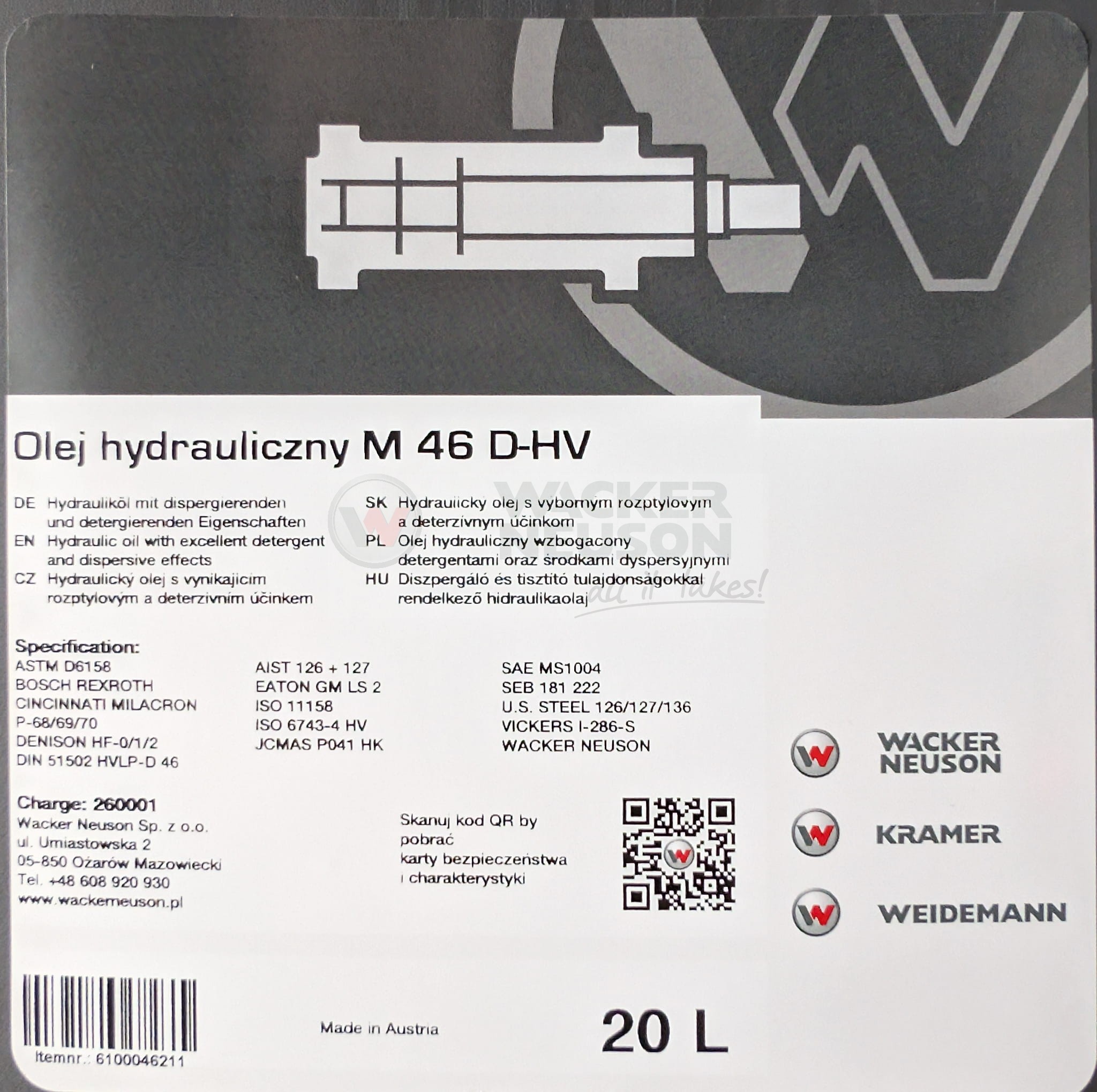 Olej hydrauliczny M 46 D-HV 20L 6100046211