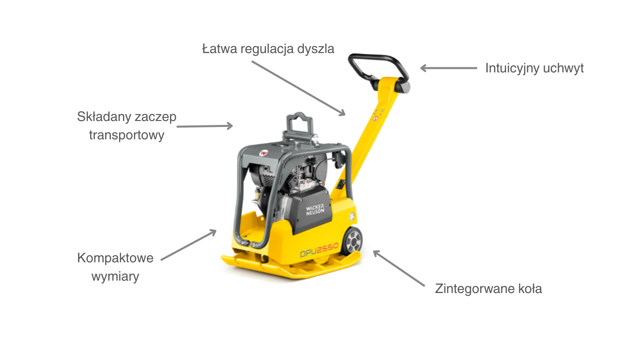 Zagęszczarka dwukierunkowa DPU2550HŚrednie zagęszczarki dwukierunkowe DPU 2550H oferują idealne połączenie wysokiej prędkości jazdy do przodu i do tyłu oraz świetną moc zagęszczania. Zagęszczarki DPU 5260 umożliwiają wydajne oraz precyzyjne zagęszczanie różnych rodzajów i struktur podłoża. Dzięki nowoczesnemu i ergonomicznemu interfejsowi użytkownika DPU5260Hehp zapewniają najwyższy komfort i ułatwiają pracę, co prowadzi do wzrostu wydajności. Liczne funkcje diagnostyczne maszyny dodatkowo ułatwiają serwis i konserwację, zapewniając płynną pracę i długą żywotność maszyny. Stworzyliśmy otwartą płytę dolną, dzięki której czyszczenie i konserwacja są jeszcze łatwiejsze. W wersji DPU 2550H znajdziecie: silnik Hatz, elektryczny rozruch, licznik MTH oraz dodatkowe poszerzenia płyty dolnej. Zagęszczarka dwukierunkowa DPU 2550H model 5000610036 wyposażona jest w:
